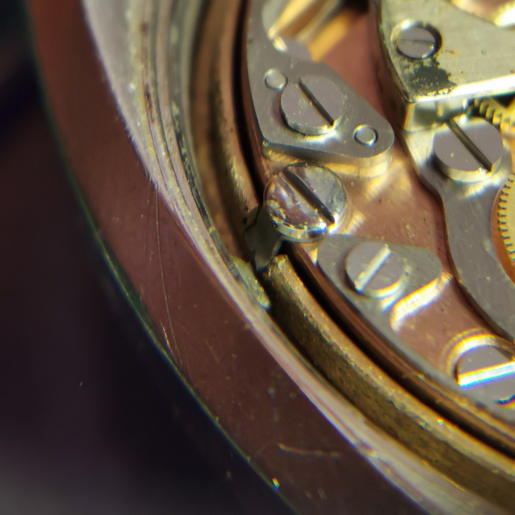 Condizioni iniziali interne: il bel calibro 920 รจ sporco e senza lubrificazione, inoltre nella seconda foto si nota una brida ferma movimento rotta che verrร sostituita.