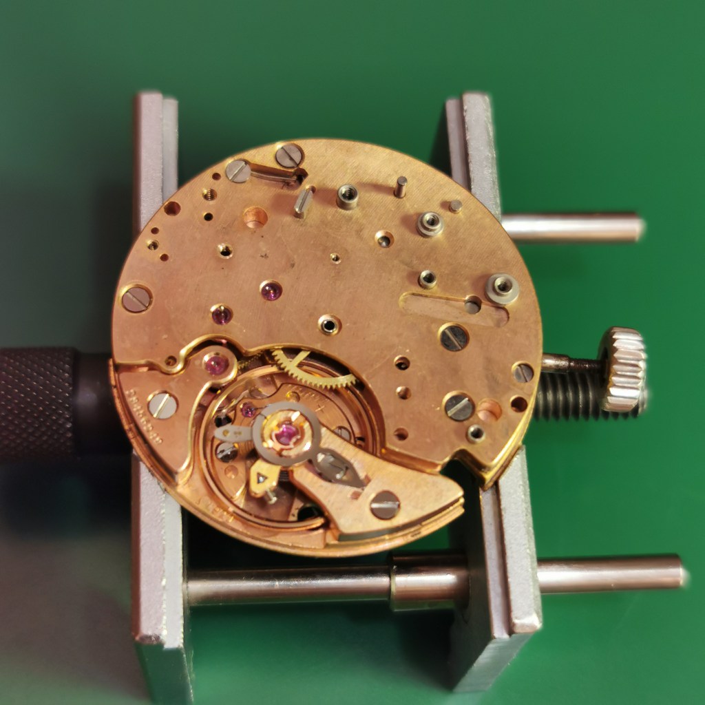 Dopo accurato rimontaggio e lubrificazione secondo le specifiche Omega, il bel movimento torna splendente e soprattutto ben funzionante.