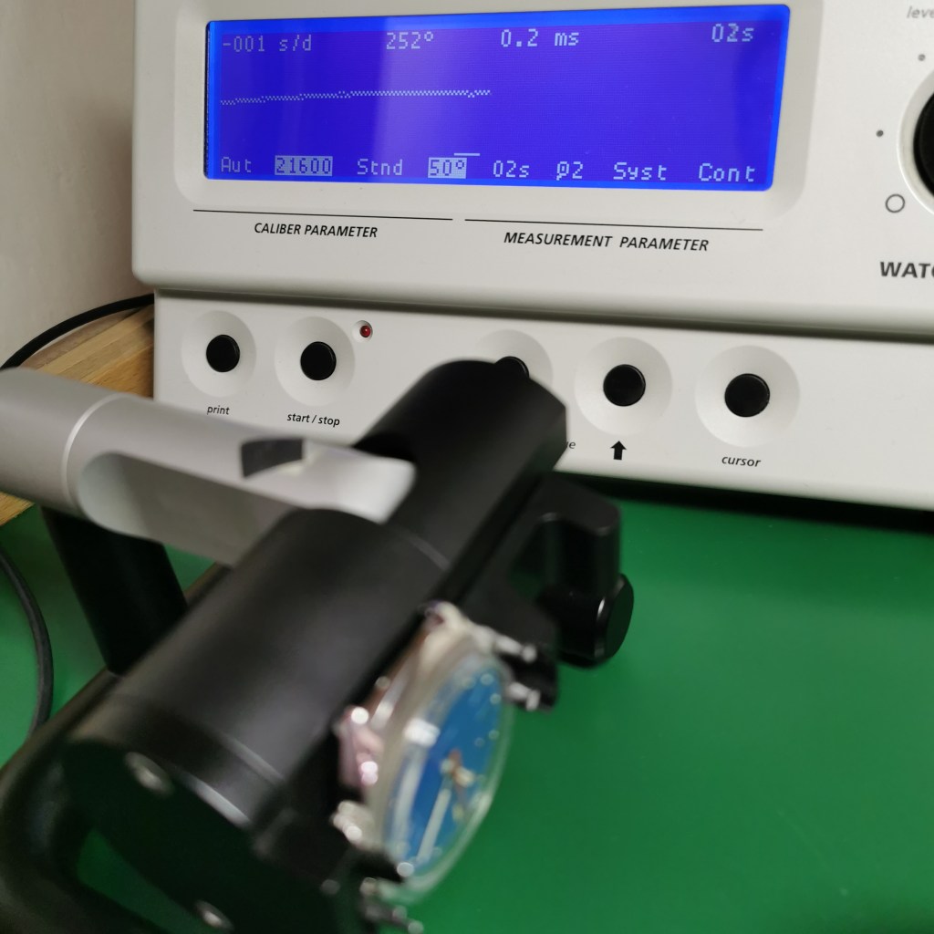 Un paio di immagini della prova al cronocomparatore in posizione orizzontale e verticale. Nonostante gli anni il calibro Omega 920 si comporta egregiamente!