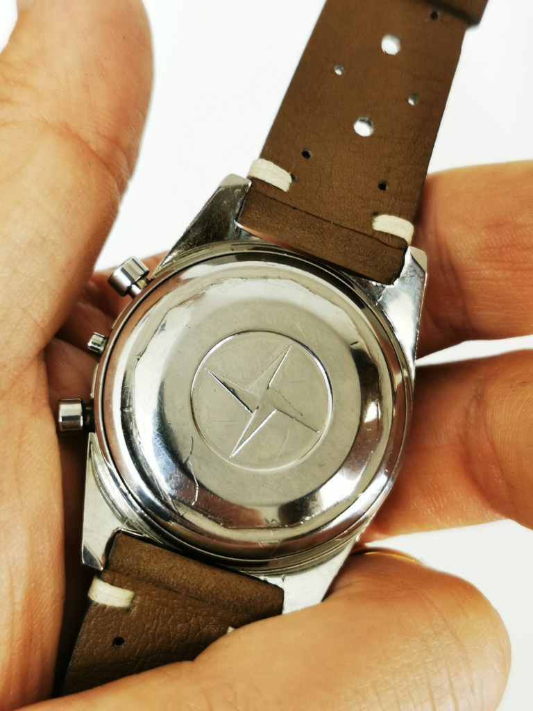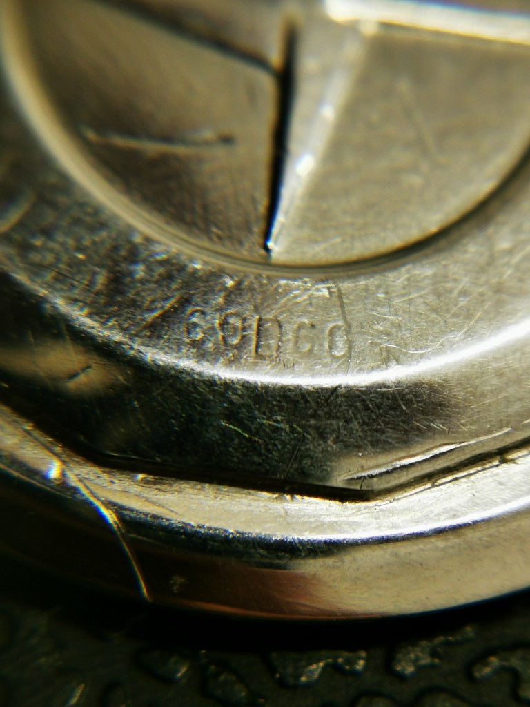 Venendo all’esemplare sul quale ho lavorato qui sotto vi mostro le condizioni iniziali: cassa con vari segni, soprattutto il fondello molto rovinato dall’uso di attrezzi non idonei nel tentativo di svitarlo e col seriale quasi svanito a causa di lucidature troppo aggressive.