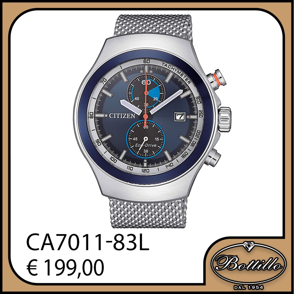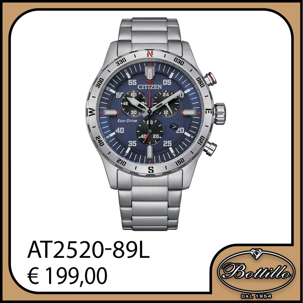 Citizen Eco-Drive cronografo, impermeabile 10 ATM. Diametro cassa 39mm.