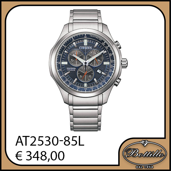Citizen Eco-Drive cronografo radiocontrollato 5 canali, cassa e bracciale in super-titanio e vetro zaffiro, impermeabile 10 ATM. Diametro cassa 43 mm.
