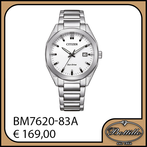 Citizen Eco-Drive in acciaio, impermeabile 10 ATM. Diametro cassa 38mm.