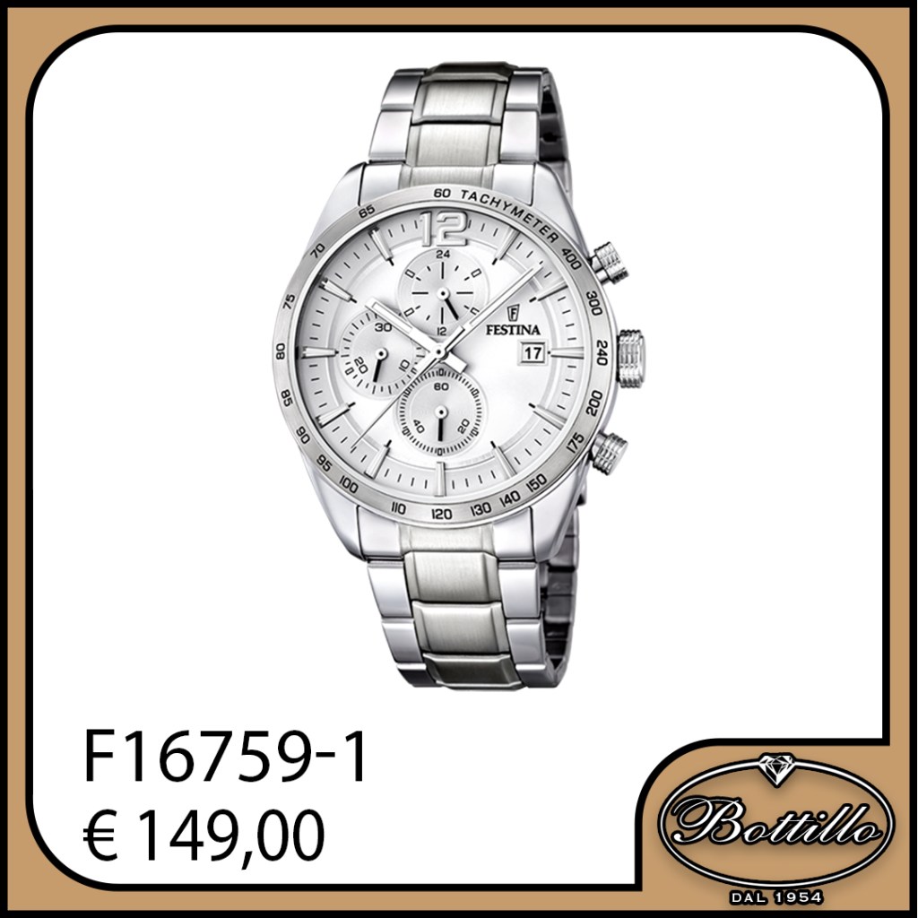 Festina cronografo in acciaio, impermeabile 10 ATM.